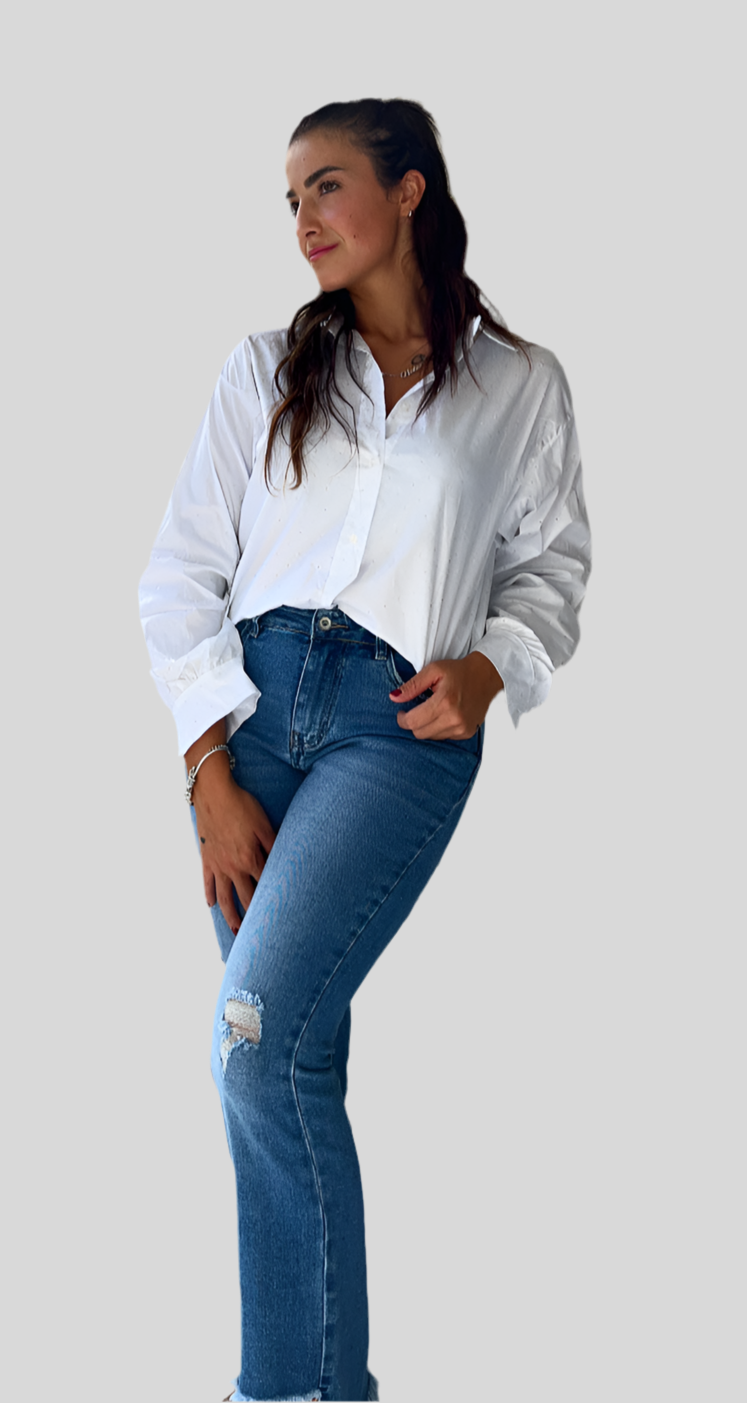 Camicia oversize white con strass