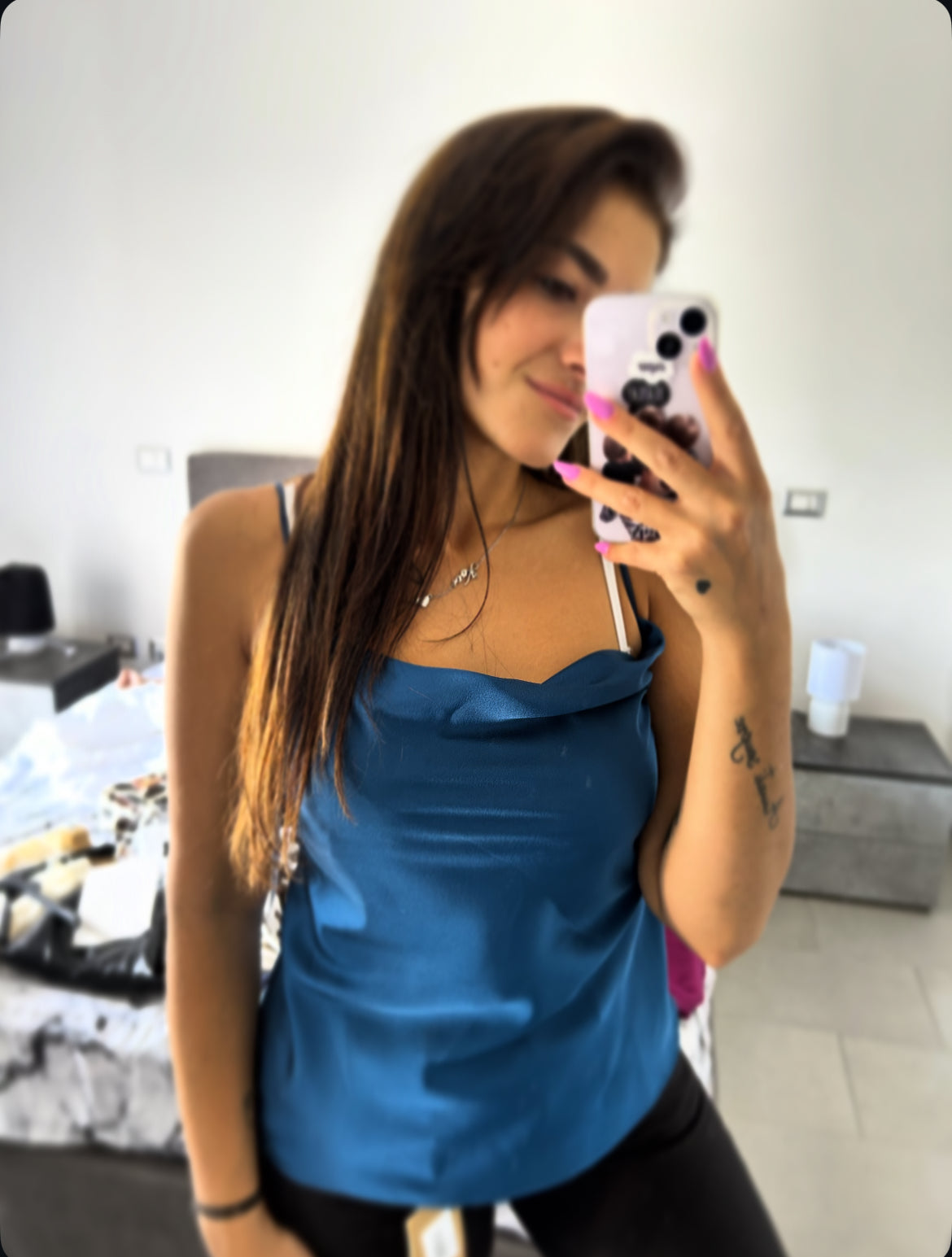 Top in raso rosa o turchese